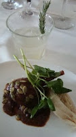 Luscious scallops were paired with the Spicy Abbey (Partida Reposado, Lillet, fresh OJ, angostura orange bitters and pepper jelly). The St. Rosemary (Partida Blanco, St. Germain, apple and lime juice and fresh rosemary) was perfect alongside zucchini blossom with bellwether ricotta and charred tomatoes. The braised leg of duck with artisan chocolate mole and corn tamale came alongside a Holy Mole (Partida Anejo, Aperol, Madeira, crème de cocoa, barrel aged bitters with a Gentleman Jack rinse with a flamed orange peel.) Dessert featured a crisp plantain with chipotle ice cream and caramel.