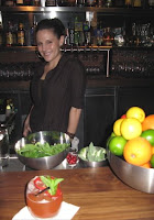 And, speaking of “professional cocktailians,” I had the pleasure of pulling up a barstool next to fellow LA-blogger Caroline on Crack, who was also eager to be among the first Angelenos experiencing this new landmark on our culinary landscape. Caroline and I are birds of a feather – photographing everything before we take a bite or sip – so she didn’t mind when I asked for a shot of her scrumptious Cantaloupe Sour (dry gin, lemon & cantaloupe juices, Gary Regan’s No. 6 orange bitters and clover honey syrup), a must-try.